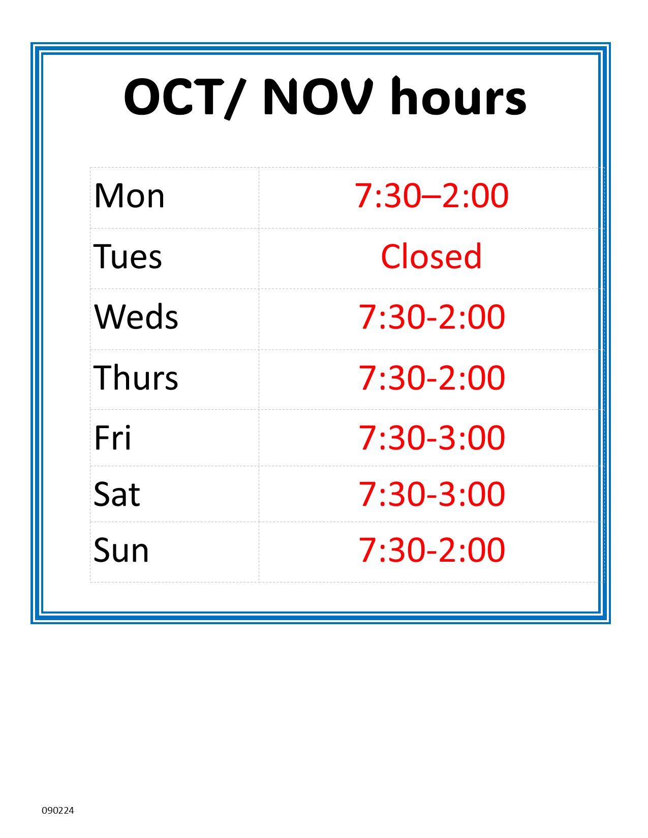 Pick-up, curbside delivery and dine in will be available. Daily updates are posted on our